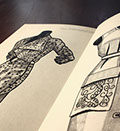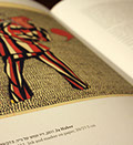 A synthesis of traditional and modern typography, emphasizes the artist’s main themes and work methods.